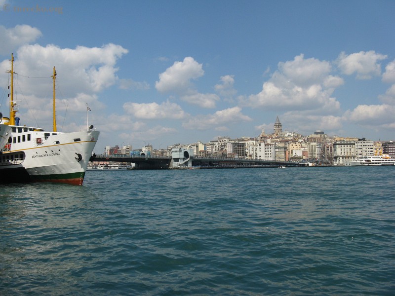 Z pohledu ze starého města a od Sultanahmetu leží Beyoğlu za zátokou zvanou Halič, což znamená Zlatý roh. Přístavy u ústí zátoky do Bosporu se nazývají Eminönü a naproti Bogazkoy. Přes Zlatý roh vedou ze starého města do Beyoglu dva mosty. V "přízemí" jednoho mostu je mnoho turistických restaurací, které podávají ryby ulovené rybáři na mostě.